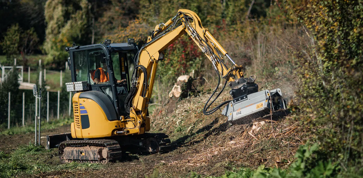 Compact forestry mulcher with Bite Limiter technology, for excavators up to 4 tonnes.