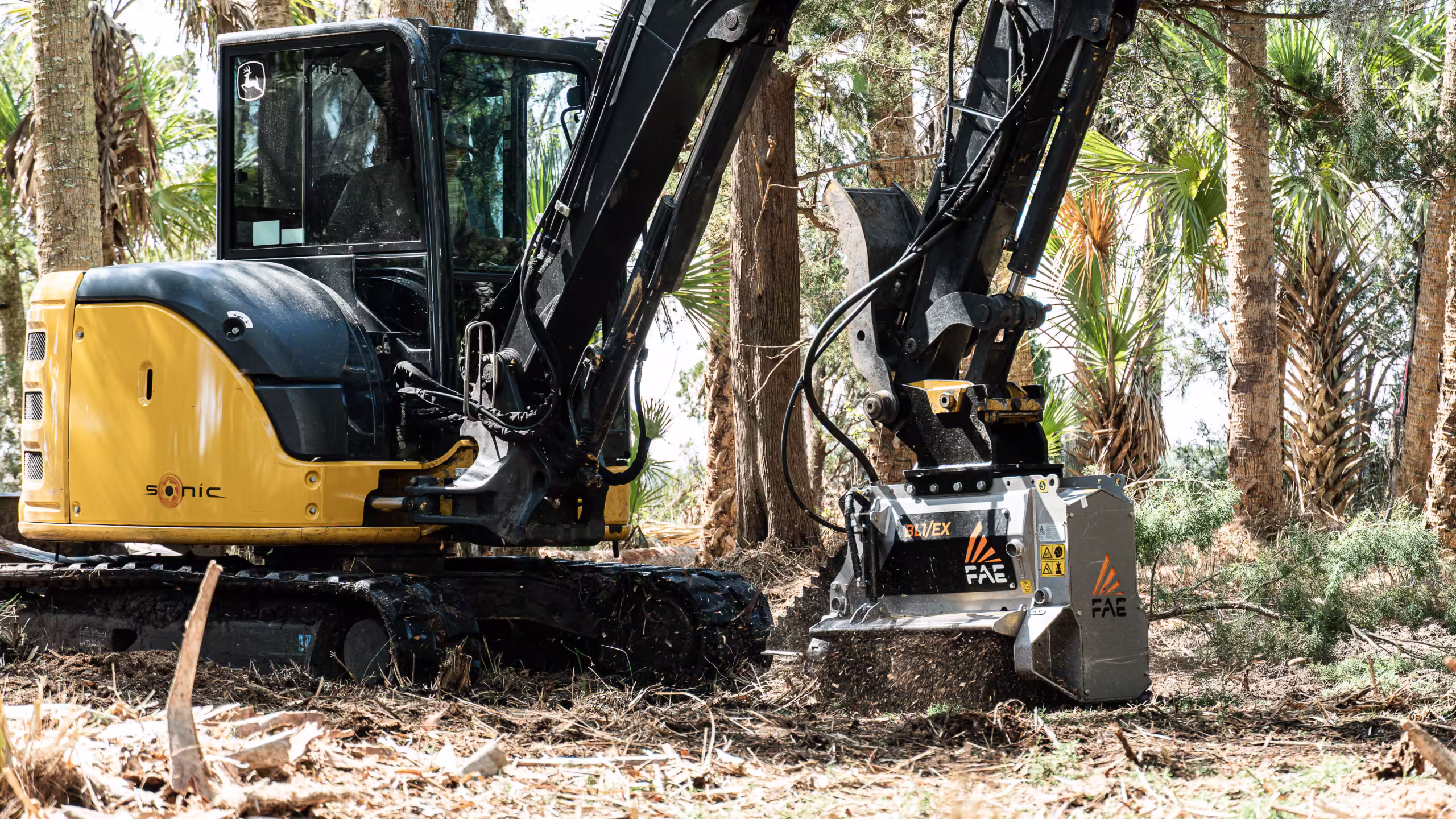 The BL1/EX, designed for excavators weighing 4 to 7.5 tonnes, is ideal for mulching light vegetation, shrubs, and trees up to 5 inches in diameter.