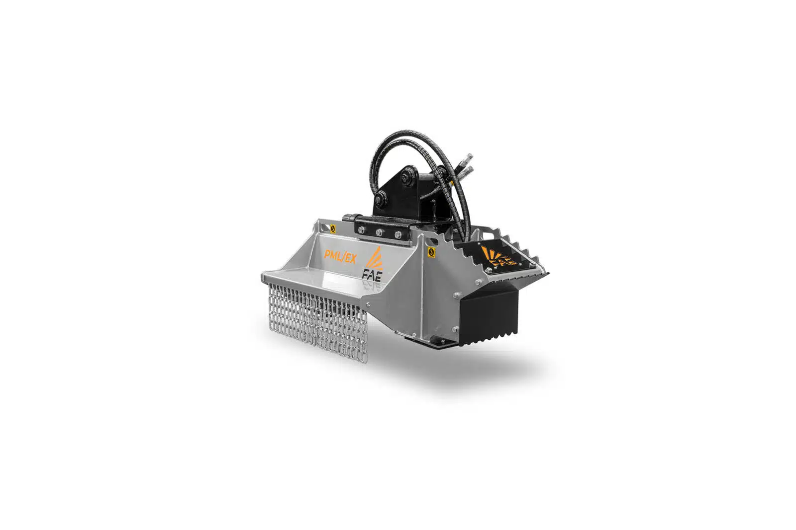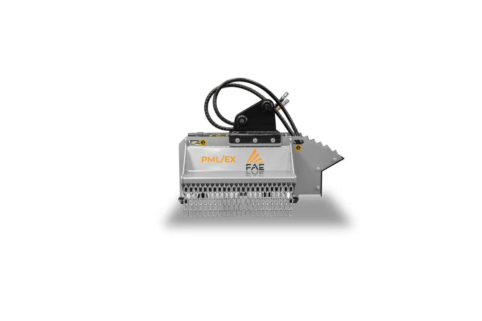 The PML/EX, designed for excavators weighing 2 to 7.5 tonnes, is the ideal tool for mulching light vegetation, shrubs, and trees up to 2 inches in diameter.