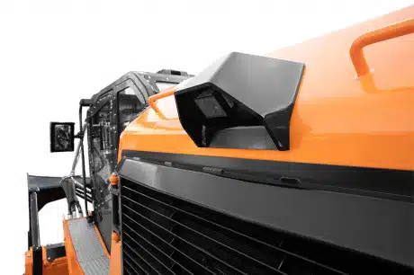 A cab designed with operator comfort in mind, down to the smallest detail. Pressurized Cat. 2 certified ROPS/FOPS/OPS, the industry benchmark. Large Lexan glass surface. Ergonomic joysticks. Pneumatic seat. 10” touch screen to control all functions. Camera system with 360° view and dedicated display.