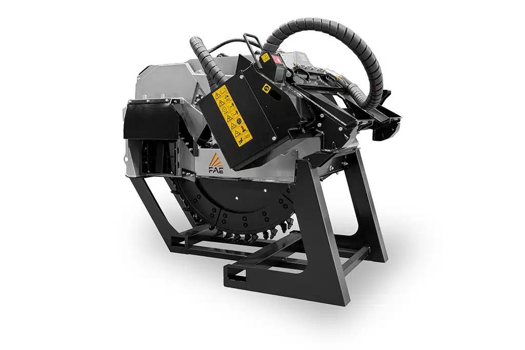 A disk saw specialized for compact loaders, ideal for the precise cutting of rocks and hard materials.