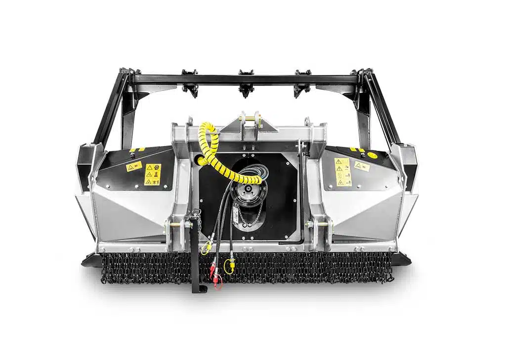 Broyeur robuste avec rotor à outils fixes, parfait pour les tracteurs nécessitant des performances fiables.